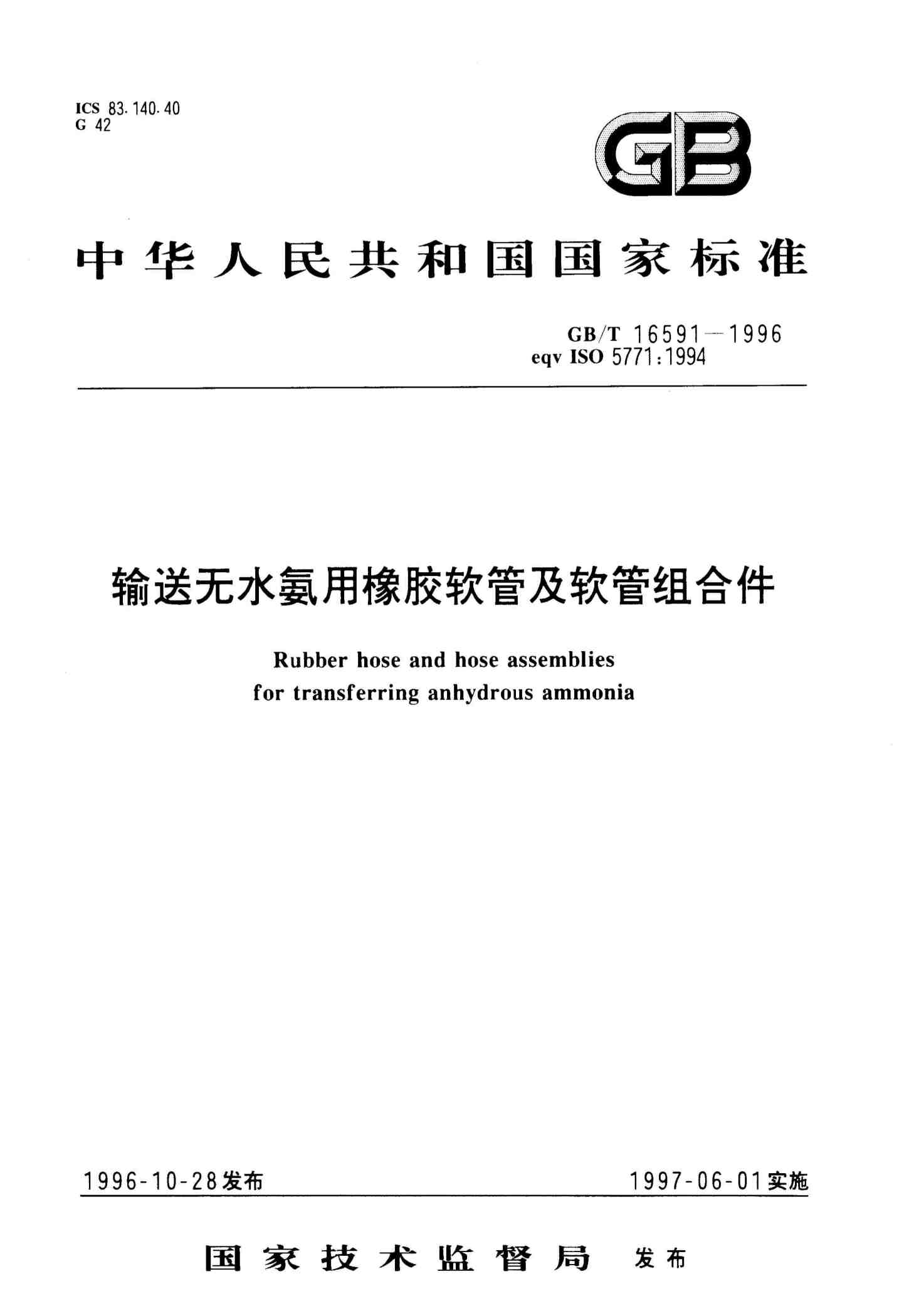 输送无水氨用橡胶软管及软管组合件