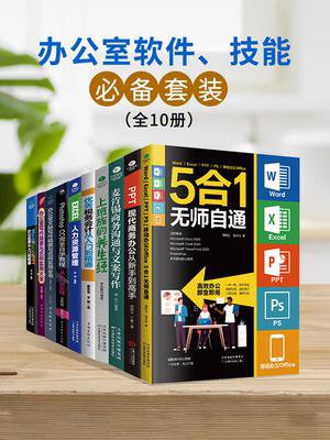 本套装书包括:《WordExcelPPTPS移动办公Office5合1无师自通》《PhotoshopCC完全自学教程:从入门到实践(全新版)》《PPT现代商务办公从新手到高手:让你的PPT更有说服力》《麦肯锡商务沟通与文案写作》《EXCEL人力资源管理》《Word?Excel?PPT办公应用从入门到精通》《上班族的养生经》《办公室文秘写作精要与范例实用全书》《办公室写作精要与范例实用大全》《优秀税务会计从入门到精通》共10册。 《WordExcelPPTPS移动办公Office5合1无师自通》将办公常用的五项(Word、Excel、PPT、PS、移动办公office)技能合一,能为你的高效办公提供强有力的帮助,助你轻松变身办公达人。 《PhotoshopCC完全自学教程:从入门到实践(全新版)》:如果你准备在UI行业发展,那么这里的设计案例一定适合你;如果你想从事电商设计工作,那么这里的修图技巧一定适合你;如果你想进军网页设计行业,那么拥有本书能让你如鱼得水……
